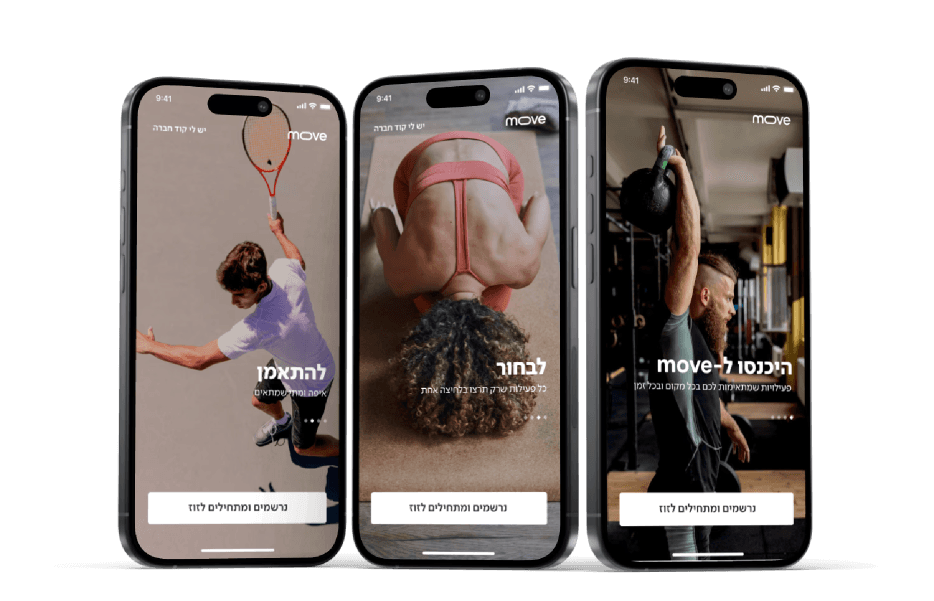 Move היא אפליקציית כושר לניהול אימונים, מעקב פעילות וחיבור בין מתאמנים למכוני כושר. במסגרת הפרויקט עיצבתי חוויית משתמש וממשק חדשבור לאפליקציה, מתוך מיקוד במובייל חווייתי, זרימות קלות והרשמה מהירה.